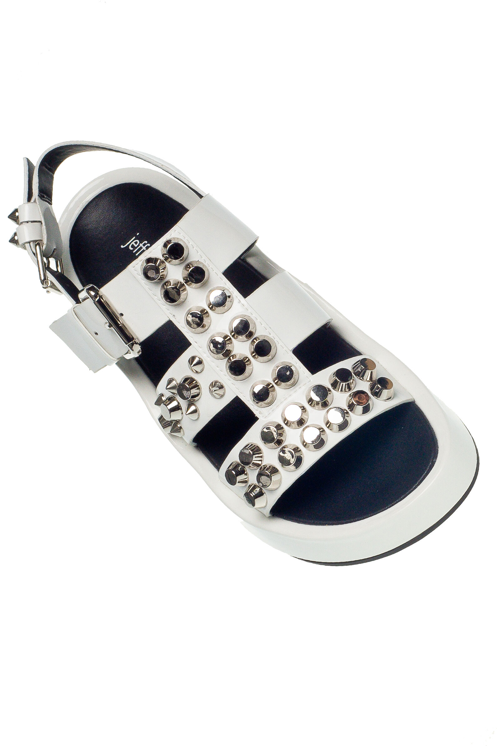 ОПИСАНИЕ Массивные белые сандалии в стиле гранж, ярко выраженном в декоре металлическими шипами украсят повседневный летний образ самых активных модниц. Толстая подошва обладает высокими амортизирующими свойствами и защищает стопу при ходьбе от ударных нагрузок. В этой паре можно с комфортом ходить весь день, не отказывая себе в долгих пеших прогулках по городу. Лаковая поверхность ремешков контрастирует с довольно агрессивным силуэтом модели. Актуальное плетение широкими ремешками надежно фиксирует ногу и дарит уверенность в каждом шаге.